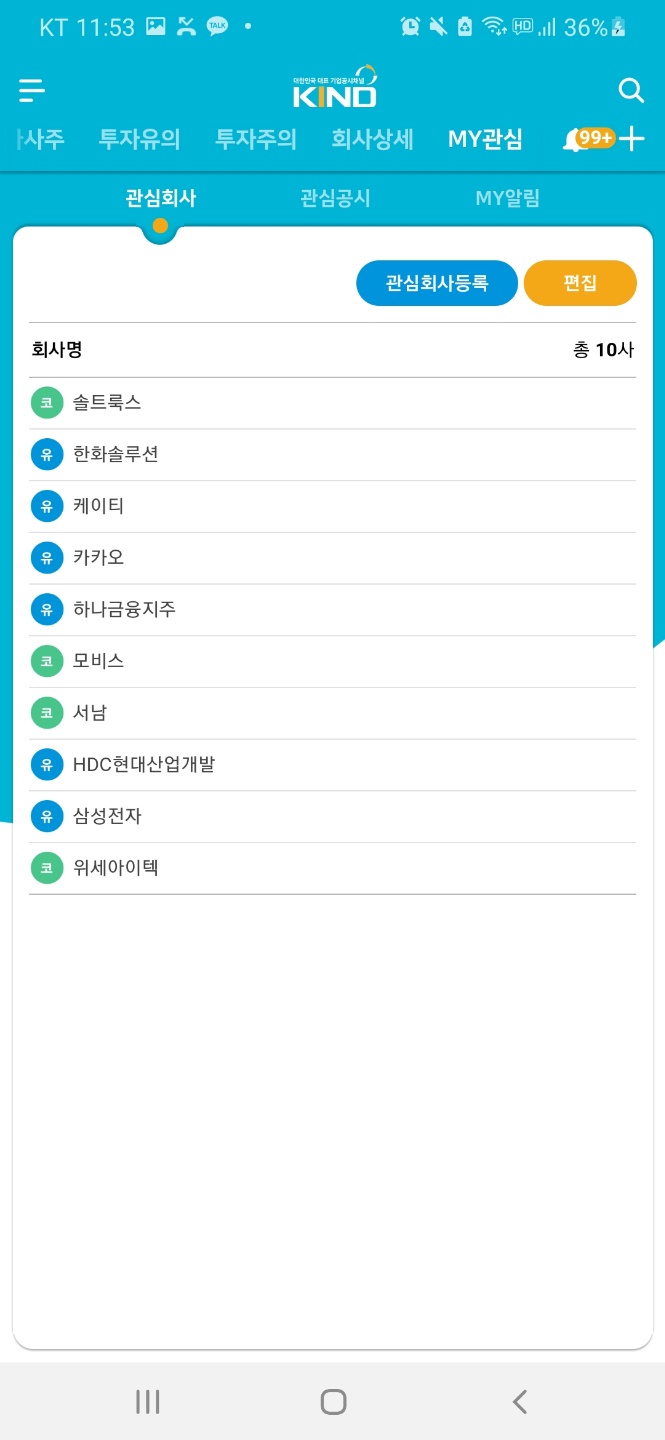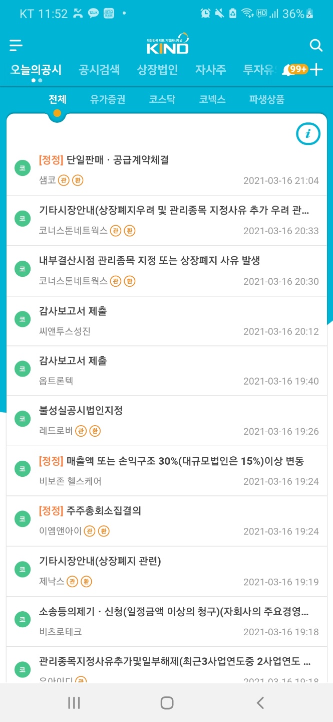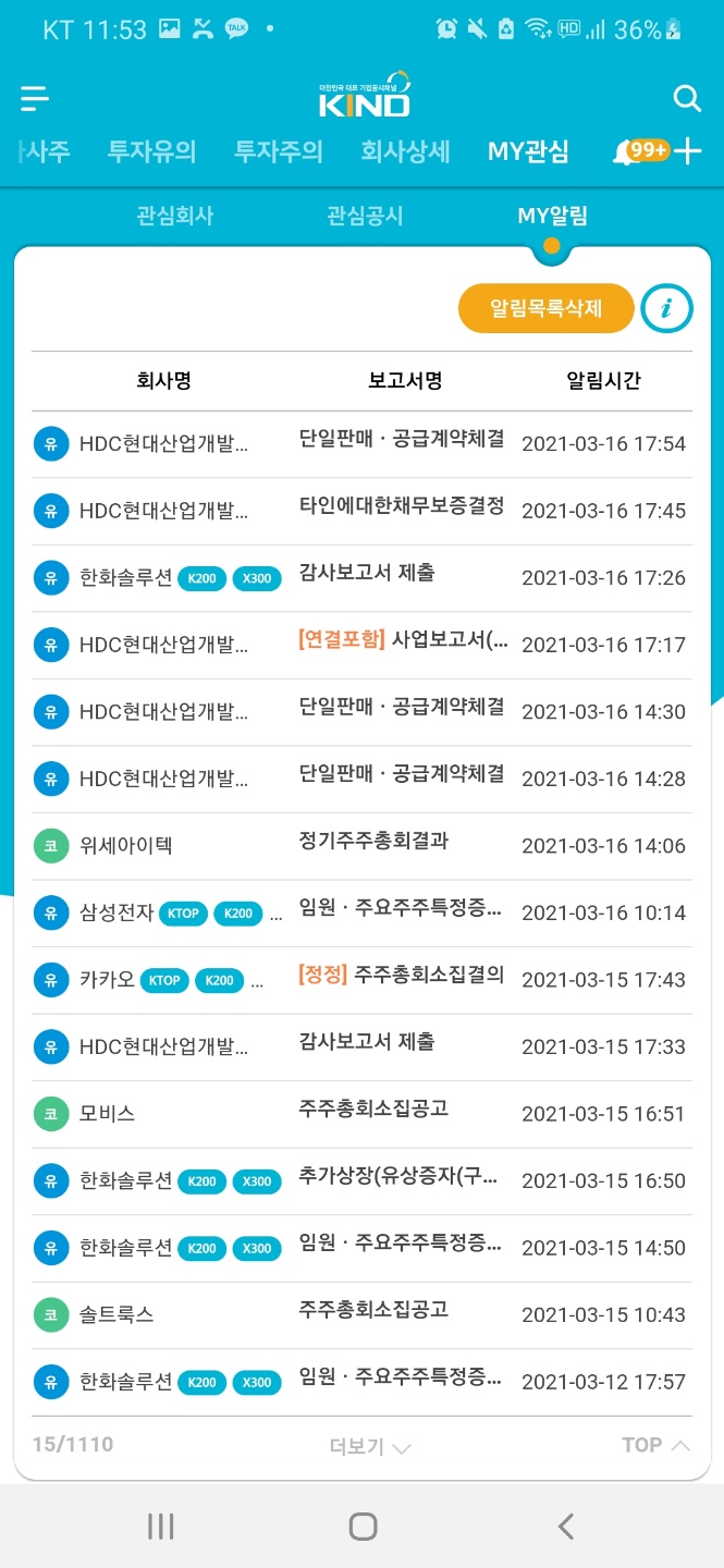 2.한국거래소어플 KIND!