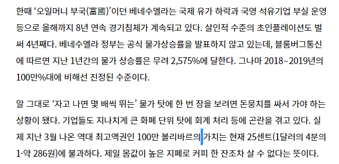 베네수엘라 일단 경제 안정화 부터 시켜야 할 것 같아요.