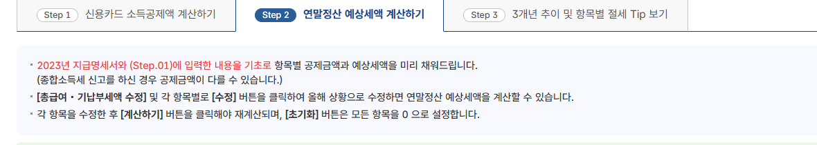 공제 액들을 수정하고 계산기 누르면 예상세액이 나옵니다!!