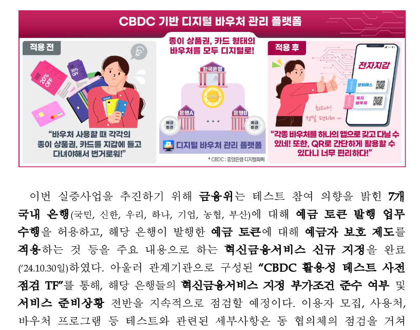 이번 실증사업에서는 CDBC가 예금토근으로서 이러한 바우처들을 실물이나 다른 화폐 발급없이