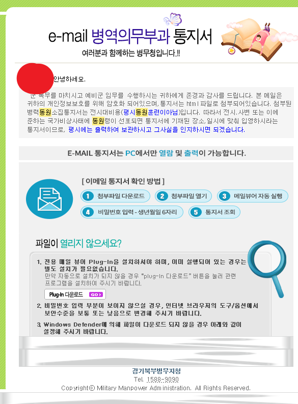 동원할 경우를 대비하여 동원 지정된 예비군에게 미리 보내는 통지서(년초) 로